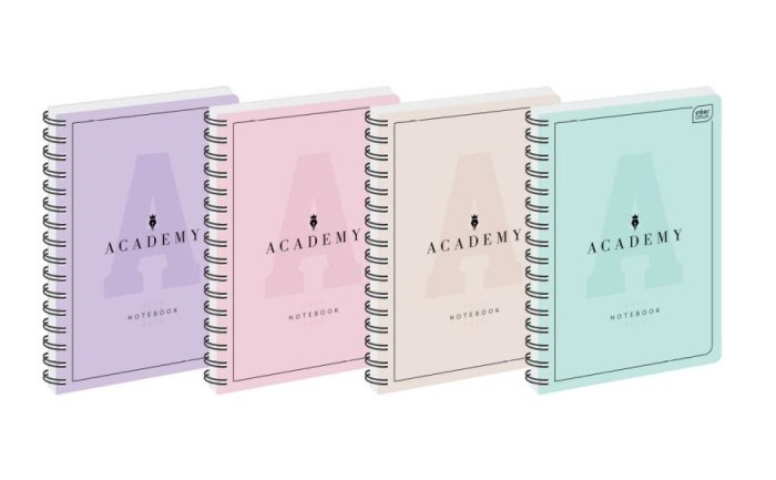 Linia Academy to najnowszy hit roku szkolnego. Dzięki nowoczesnemu wyglądowi i wysokiej jakości, produkty, pozwolą Ci się wyróżnić na tle innych. Kartki wykonane są ze specjalnego papieru o gramaturze 90g, dzięki czemu są super gładkie, a długopis nie przebija na drugą stronę. Minimalistyczne i stylowe okładki są odpowiednie dla osoby w każdym wieku, a także doskonale nadają się do użytku w biurze.