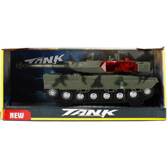 Maszyna na baterie posiada efekty dźwiękowe oraz świetlne. Gąsienicowy układ jazdy doskonale imituję jazdę prawdziwego czołgu.