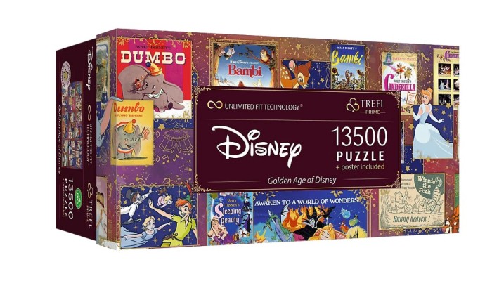 Odkryj puzzle Trefl Prime UFT składające się z imponujących 13 500 elementów! Ułóż ogromną układankę przedstawiającą jedne z pierwszych bajek Disneya. Co je wyróżnia? - najgrubsza tektura puzzlowa na rynku, - specjalny, nieregularny kształt elementów, - układankę można przenosić oraz obracać, bez obawy o to, że się rozsypie. 9 układanek puzzlowych (każda po 1500 elementów) możesz połączyć w gigantyczny obraz zaproponowany na plakacie lub puścić wodze wyobraźni i stworzyć własną kompozycję! Puzzle to świetny trening pamięci, ćwiczenie koncentracji, rozwój zdolności manualnych, cierpliwości i spostrzegawczości. Wyjątkowy prezent dla miłośników puzzli, dorosłych i dzieci powyżej 12. roku życia.