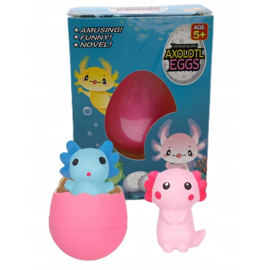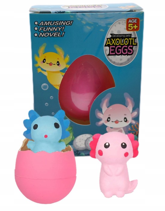 Każde jajo kryje w sobie uroczego aksołotla w jednym z wielu kolorów.
