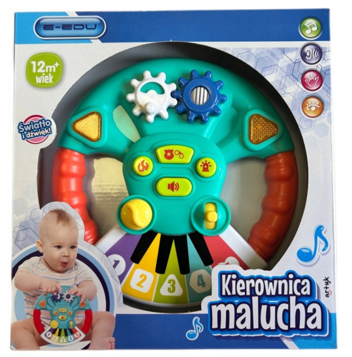 Dzięki realistycznym dźwiękom, efektom świetlnym i różnorodnym elementom do naciskania, obracania i przekręcania dziecko rozwija motowykę, koordynację oraz myślenie logiczne.