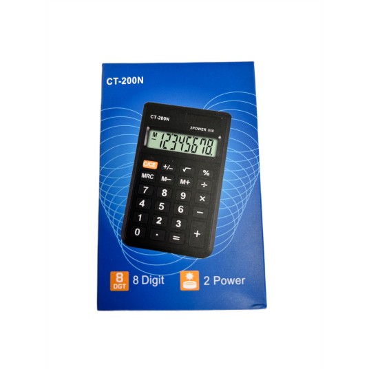 Model CT-200N wyposażony jest w 8-cyfrowy, czytelny wyświetlacz LCD, podstawowe funkcje matematyczne (dodawanie, odejmowanie, mnożenie, dzielenie), obliczenia procentowe oraz funkcje pamięci: MRC, M+, M−. Dodatkowo oferuje klawisze korekty (C/CE), zmiany znaku (+/−) i pierwiastkowania (√), co czyni go wszechstronnym i funkcjonalnym narzędziem.