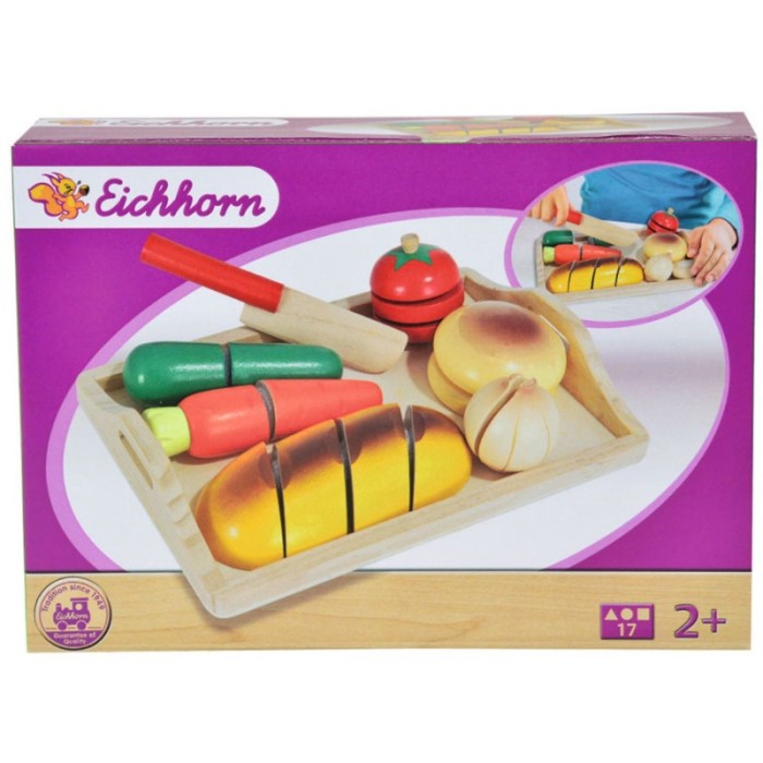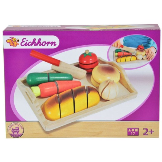Łatwa zabawa - drewniane artykuły spożywcze składają się z dwóch do czterech drewnianych części, które są połączone za pomocą rzepów. Dzieci mogą przecinać nożem warzywa i pieczywo wzdłuż szczeliny i tym samym podzielić przedmioty na plastry.