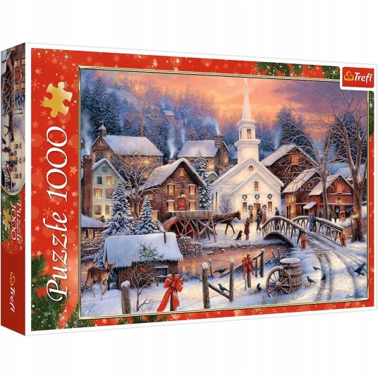 Puzzle składające się z 1000 elementów przedstawiające krajobraz miasteczka w okresie Świąt Bożonarodzeniowych.