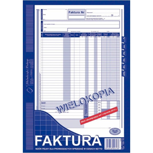 FAKTURA VAT A4 100-1E WIELOKOPIA XXX