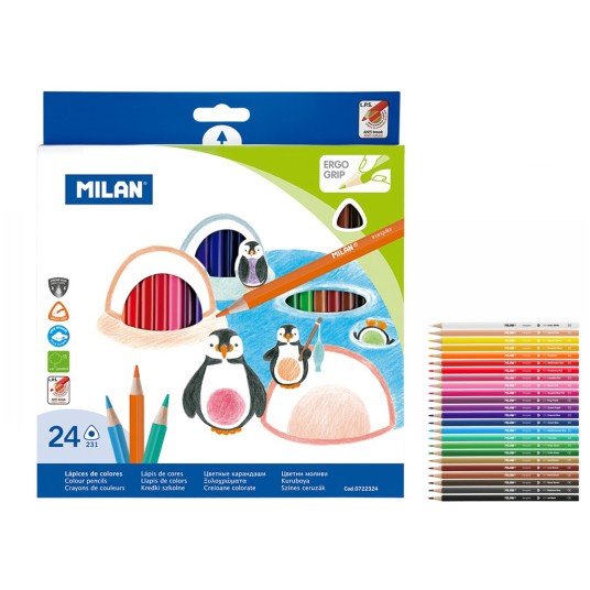 KREDKI OŁÓWKOWE TRÓJKĄTNE MILAN 24 KOLORY 7929