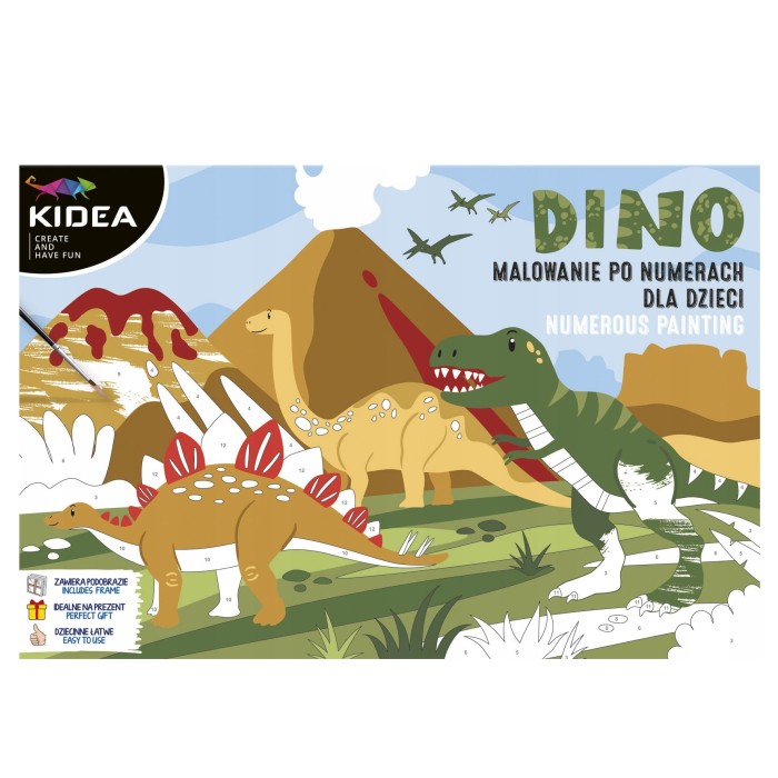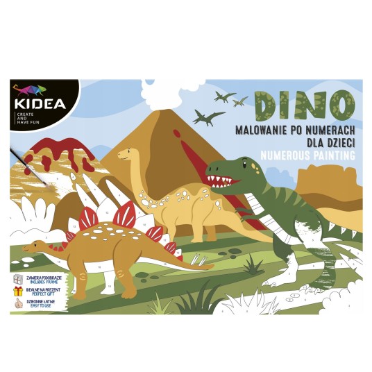 Obraz do malowania z dinozaurami od KIDEA przeniesie Cię do świata dinozaurów.