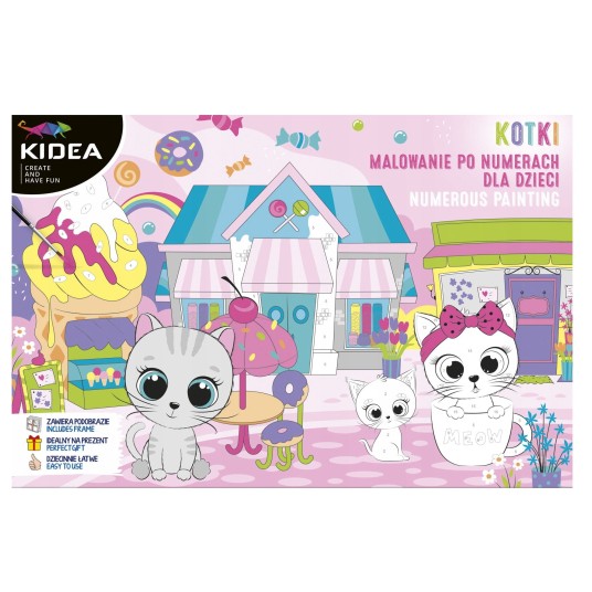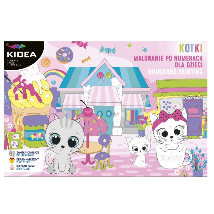 Obraz do malowania po numerach z kotkami od KIDEA to idealna kolorowanka dla małych artystów.