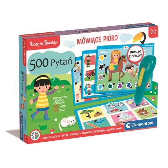 Mówiące elektroniczne pióro prowadzi dziecko przez grę, informując je, czy udzielona odpowiedź jest prawidłowa.