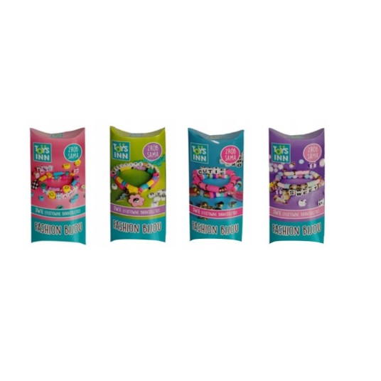 W poręcznej saszetce znajdują się wszystkie niezbędne elementy i akcesoria do wykonania dwóch, fantazyjnych bransoletek.