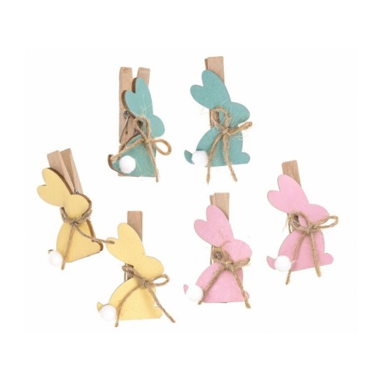 Klamerki drewniane z króliczkami w trzech wiosennych kolorach: żółtym, laurowym i różowym to idealny dodatek do projektów wielkanocnych.