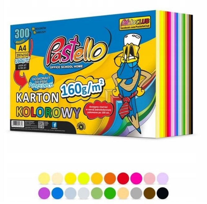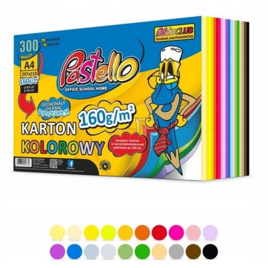 KARTON KOLOROWY A4 160G 300 ARKUSZY