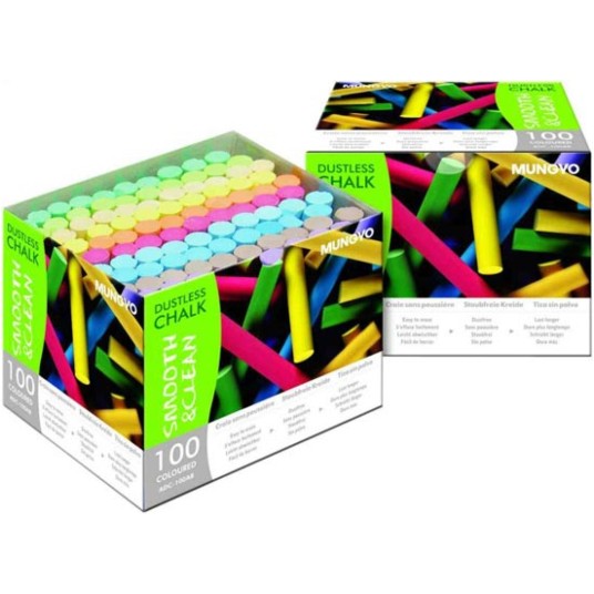 Kolorowa kreda do pisania o dużej gęstości, trwała i ekonomiczna w użytkowaniu. Nie tworzy pyłu kredowego, zastosowana specjalna powłoka zabezpiecza przed ubrudzeniem rąk. Posiada certyfikaty zgodności z normą EN71 i ASTM D4236.