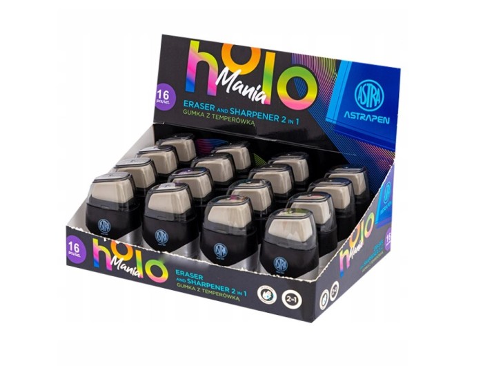 Temperówka z gumką 2w1 ASTRAPEN HOLOmania - 16 szt