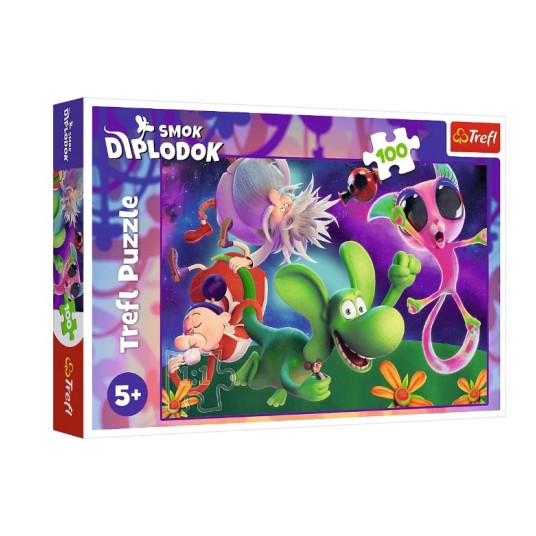 Smok Diplodok i Przyjaciele to puzzle składające się z 100 elementów, zaprojektowane z myślą o małych fanach bajki Smok Diplodok. Po ułożeniu układanki powstanie obrazek o wymiarach 410x275 mm.
