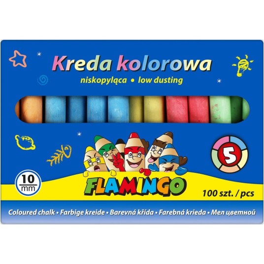 Kreda szkolna kolorowa w 5 kolorach. Niskopyląca i niekrusząca. Specjalna powłoka pokrywająca każdą pałeczkę kredy powoduje, że ręce są czyste, a otoczenie jest wolne od pyłu kredowego.