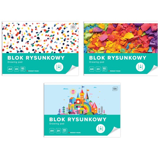 Blok zawiera 20 białych kartek o gramaturze 80 g/m2 w formacie A4.
