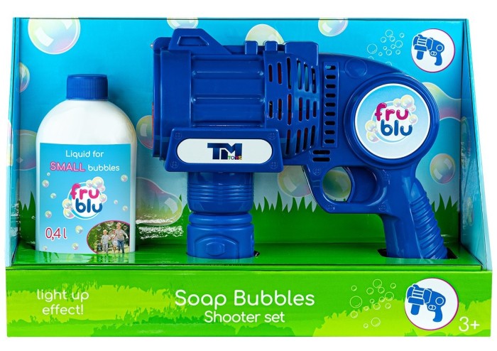 Zestaw zawiera zabawkę bańkowy shooter oraz butelkę z płynem o pojemności 0,4 litra.