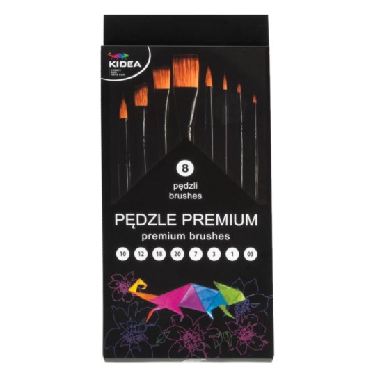 Profesjonalny zestaw pędzli KIDEA PREMIUM to idealny wybór dla każdego artysty – zarówno początkującego, jak i zaawansowanego. Starannie dobrany zestaw 8 pędzli o różnych kształtach pozwala na wygodne tworzenie detali i szerokich pociągnięć pędzla w wielu technikach malarskich.