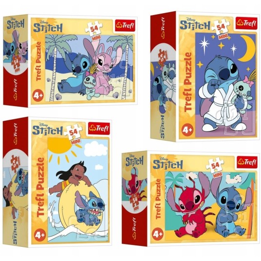 W zestawie znajdują się 54 elementy mini puzzli z ilustracją przedstawiającą bohaterów serialu animowanego Lilo i Stitch.