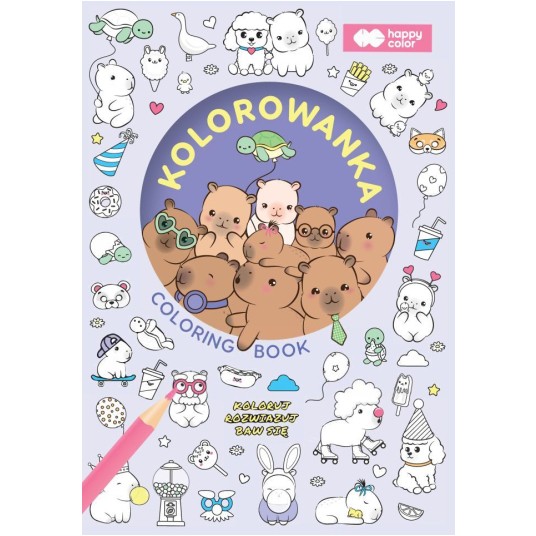 Obok słodkich ilustracji do pokolorowania znajdziesz tu aż 8 stron z różnorodnymi zadaniami, takimi jak labirynty, znajdź różnicę czy nauka liczenia do 10.