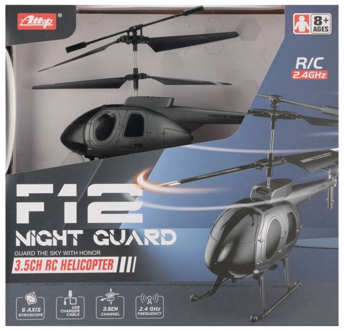 Zawartość zestawu: helikopter, pilot do zdalnego sterowania, kabel USB, śrubokręt, zapasowe śmigła.