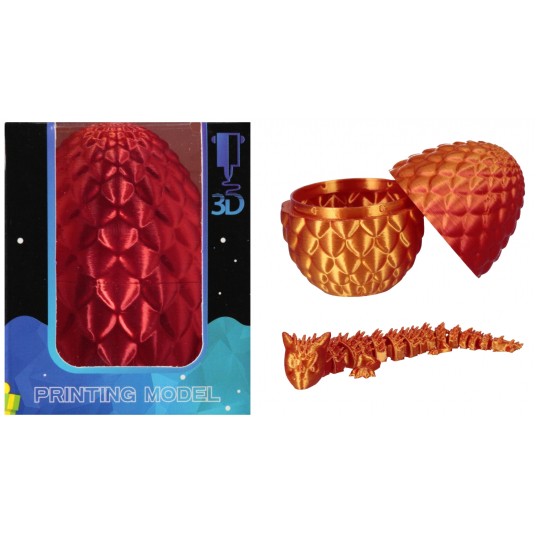 Ruchoma, sensoryczna zabawka, drukowana 3D. Zabawka schowana w metalicznym pomarańczowo-czerwonym zamykanym jajku, wykonany z tworzywa sztucznego.