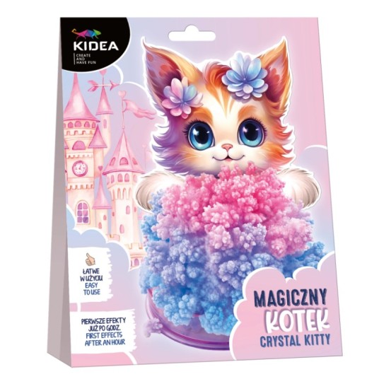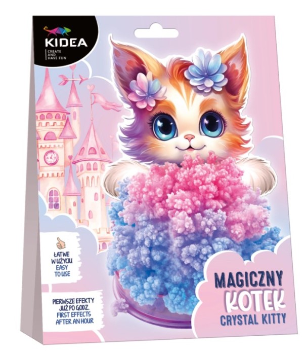 Magiczny krystaliczny kotek Kidea. To wyjątkowy zestaw, który zaintryguje każde dziecko zainteresowane nauką i eksperymentami oraz uwielbiające świat fantastyki. W opakowaniu znajdują się 4 tekturowe elementy do złożenia, podstawka oraz 3 specjalne woreczki z płynem. Po złożeniu konstrukcji wystarczy polać tekturowe elementy dołączonym płynem, aby rozpocząć niezwykły proces rozkwitu. Już po godzinie można dostrzec pierwsze efekty – kotek pokrywa się barwnymi kryształkami. To nie tylko świetna forma zabawy, ale także inspirująca okazja do nauki i rozwijania ciekawości świata. Doskonały pomysł na prezent dla młodych odkrywców!