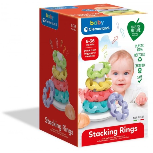 Pierścienie wykonane są z różnych powierzchni do stymulacji dotykowej percepcji dzieci od pierwszych miesięcy życia.