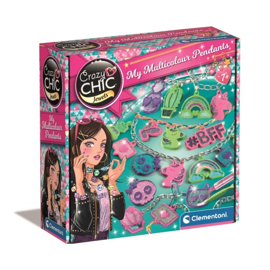 Zestaw zawiera metalowe łańcuszki i kółeczka, zawieszki o nowoczesnym i atrakcyjnym wzornictwie, wielobarwny sznureczek i kolorowy brokat.