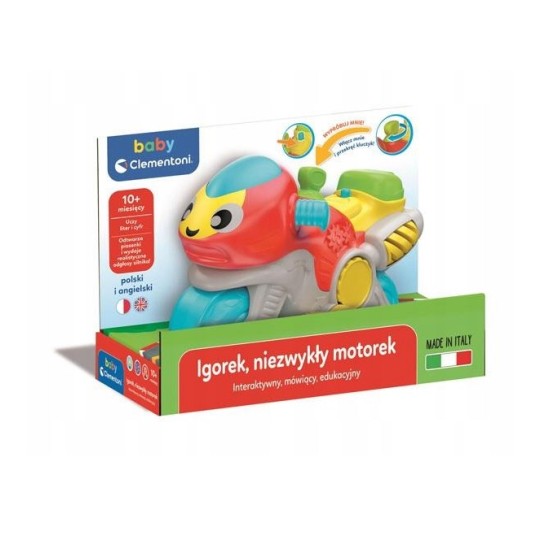 INTERAKTYWNY MOTOR to wesoły, edukacyjny motocykl, który mówi, śpiewa oraz uczy liczb i pierwszych liter alfabetu zarówno w języku polskim, jak i angielskim.