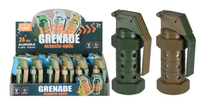 Zalety produktu Zabawka w formie granatu o długości 10 cm to doskonały gadżet dla małych miłośników wojskowych przygód i zabaw w żołnierzy.