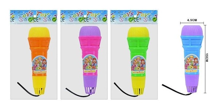 Zabawka typu mikrofon ze sprężynką w środku. Przy uderzaniu w główkę mikrofonu wydaje charakterystyczny dźwięk drgającej w środku sprężynki. Każdy mikrofon posiada kolorystykę przyjazną dziecięcej wrażliwości.