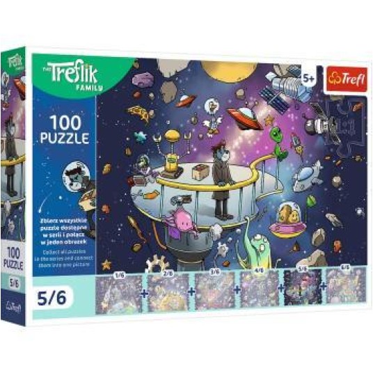 Bert w kosmosie (5/6), to puzzle 100 elementów i część niezwykłej kolekcji, która po złożeniu wszystkich sześciu zestawów tworzy jedną dużą, fascynującą ilustrację przedstawiającą międzyplanetarne przygody sympatycznej Rodziny Treflików.