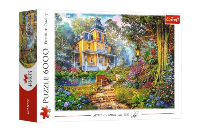 Imponującej wielkości puzzle składające się z 6000 elementów przedstawiające letnią rezydencję nad stawem. Twórcą obrazu jest słynny brytyjski artysta Dominic Davison.