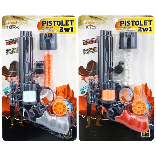 W zestawie znajduje się pistolet, kapiszony i kulki.