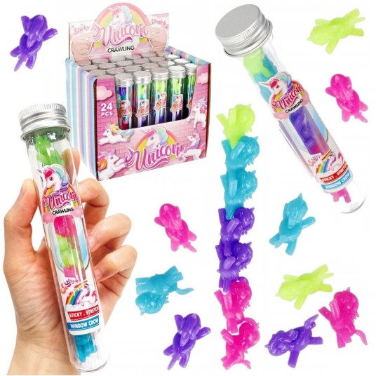 Przedstawiamy magiczne, elastyczne jednorożce "Sticky Crawling Unicorns", które zapewnią godziny fantastycznej zabawy! Te urocze, lepkie figurki w żywych kolorach to idealny gadżet do rzucania, rozciągania i przyklejania do gładkich powierzchni, a następnie obserwowania, jak "czołgają się" w dół.