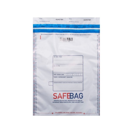 Koperta bezpieczna wykonana z transparentnej folii LDPE. Posiada wszystkie cechy oraz zabezpieczenia. Każda koperta ma miejsce do znakowania, opisywania oraz posiada unikalny numer seryjny.