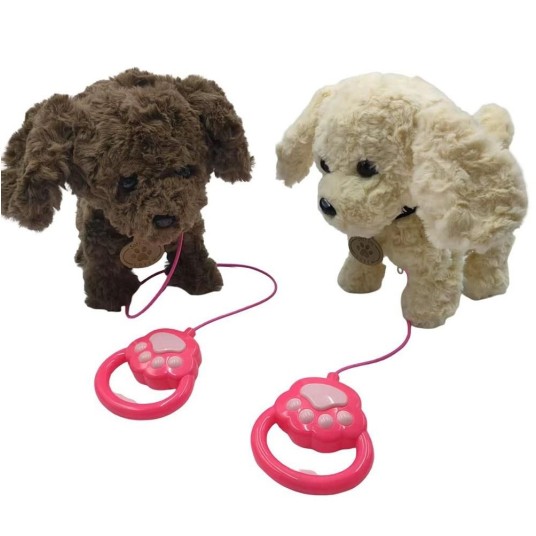 Zabawka jest dostępna w dwóch kolorach: beżowym oraz brązowym, co pozwala wybrać ulubioną wersję. Wystarczy nacisnąć przycisk na smyczy-pilocie w kształcie łapki psa, aby ruszył przed siebie przy dźwiękach wesołych piosenek.