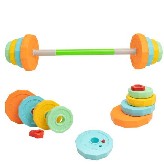 Kolorowa sztanga dla dzieci z możliwością regulacji wagi - aktywna zabawa i sportowe emocje! Ta kolorowa sztanga to świetna propozycja dla dzieci, które lubią ruch, sport i aktywne zabawy. Dzięki możliwości napełniania obciążeń wodą, można łatwo dopasować wagę sztangi do możliwości dziecka. Maksymalna waga po napełnieniu to aż 3 kg!