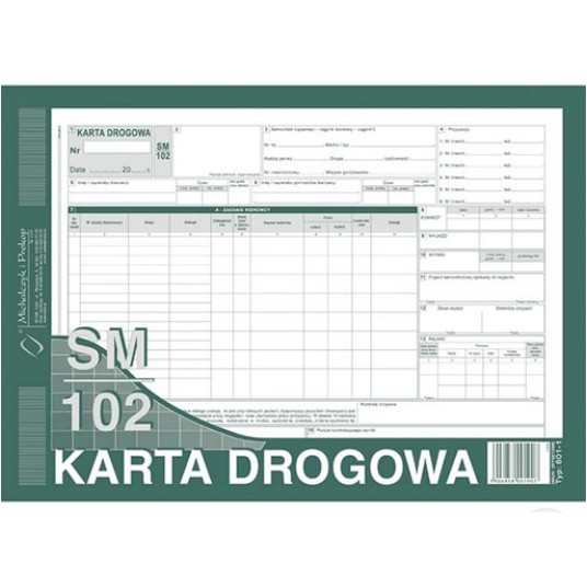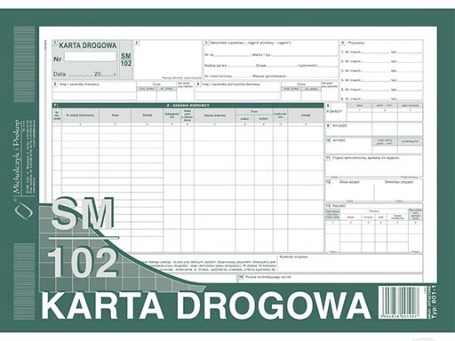 KARTA DROGOWA - SAM.CIĘŻ. A4 SM/102 801-1 NUMER.