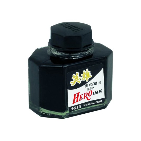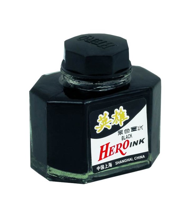 Atrament Hero – wysokiej jakości, trwały atrament do piór wiecznych– zawiera opóźniacz utleniania i korozji– bez osadów– opakowanie szklane– kolor czarny– wymazywalny– pojemność 50 ml