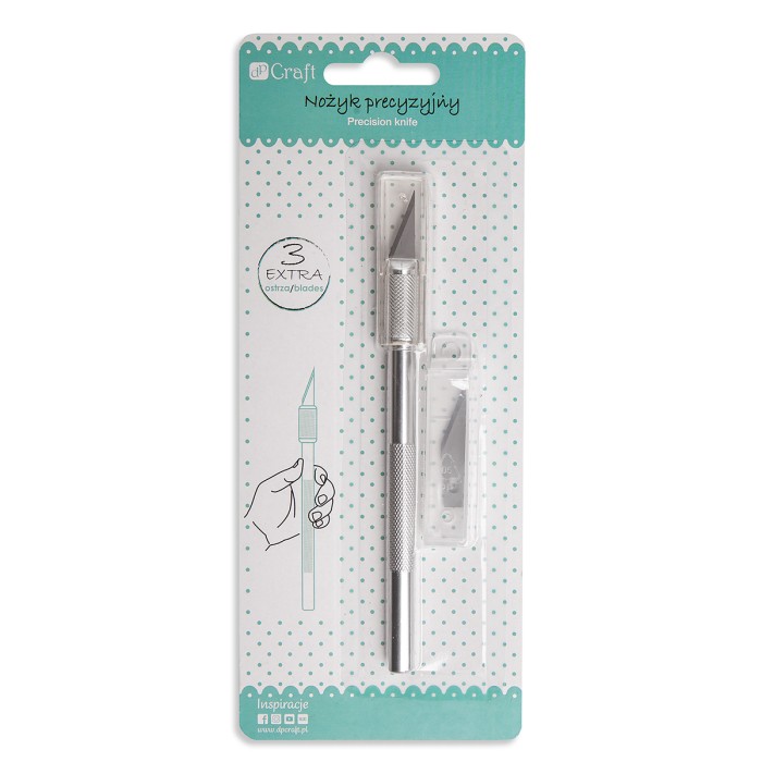 Praktyczny i funkcjonalny nożyk do precyzyjnego wycinania wykonany z materiałów nierdzewnych. To niezastąpione narzędzie we wszystkich technikach wymagających precyzyjnego cięcia. Świetnie sprawdzi się w cardmakingu, scrapbookingu, decoupage, modelarstwie, itp. Wycina w papierze, piance, tekturze, folii, serwetkach do decoupage.