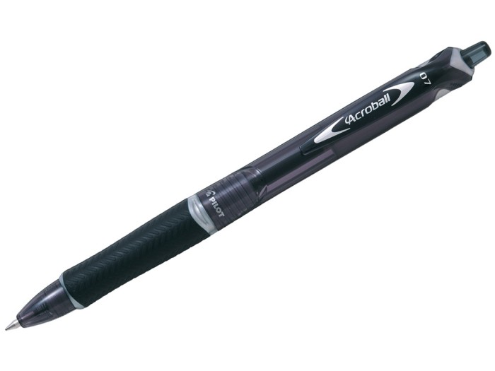 Nowoczesny długopis olejowy Acroball marki Pilot z czarnym, wymiennym wkładem, to uniwersalny produkt, ponieważ sprawdzi się na wszystkich rodzajach papieru, a to ze względu na stawianie nieznacznego oporu podczas pisania.