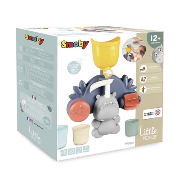 Hipcio uwielbia wodę! Dziecko za pomocą trzech kubeczków o różnej wielkości może wlewać wodę do żółtego pojemnika i skierować ją w jednym z trzech kierunków. Brzdąc obserwuje, jak woda porusza kołami obrotowymi. Doświadczanie, samodzielnie przesuwanie elementów zabawki, wlewanie wody – wszystkie te aktywności angażują dziecko motorycznie, przyczyniając się do jego rozwoju.