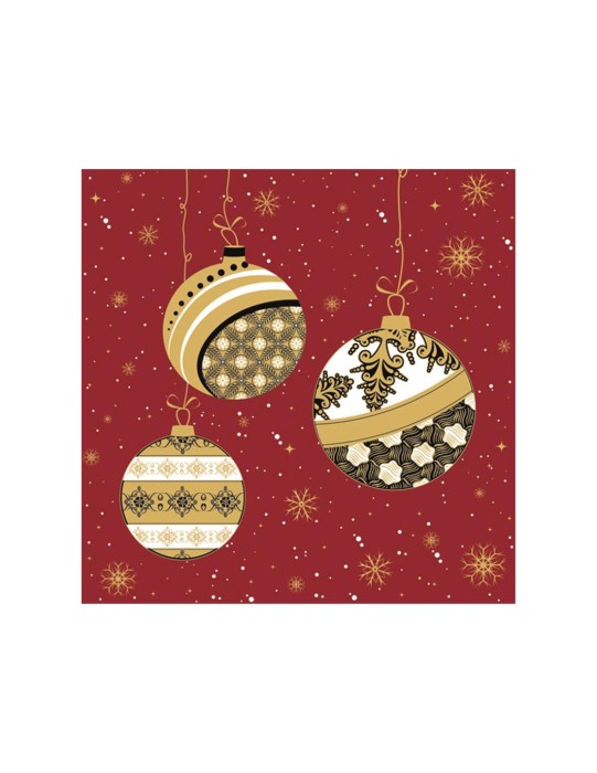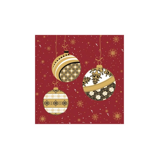 Serwetki w świątecznych klimatach, z nadrukiem przedstawiającym bombki na czerwonym tle. Wspaniały dodatek, który wzbogaci wygląd świątecznego stołu.