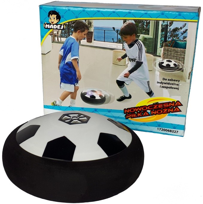 UNOSI SIĘ NAD POWIERZCHNIĄ – zasilany na baterie krążek jest niewielkiej wagi, a po włączeniu, dzięki znajdującemu się w środku wirnikowi, unosi się lekko nad ziemią; wystarczy delikatnie kopnąć dysk, aby się przemieścił; najlepiej sprawdzi się na płaskiej powierzchni typu kafelki czy panele lub na zewnątrz na równym podłożu.