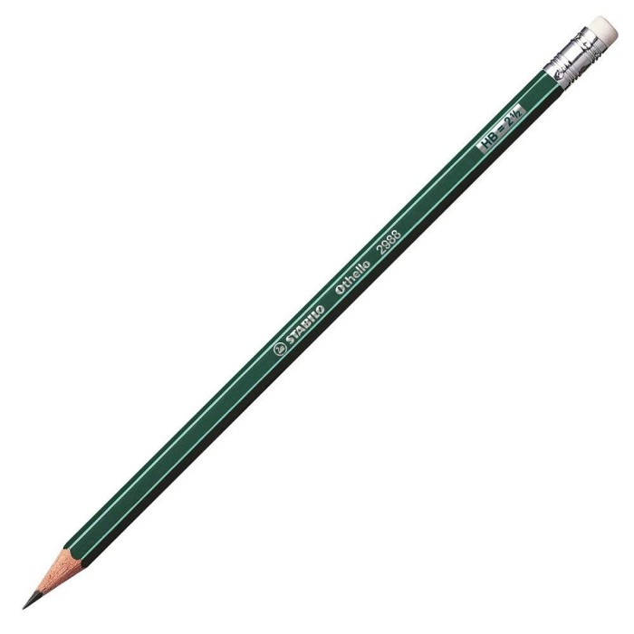STABILO Othello - popularny ołówek techniczny z gumką dostępny w 3 twardościach. Idealny dla artystów oraz amatorów, uczniów, studentów i wszystkich, którzy potrzebują ołówka. Klejony grafit zwiększa jego odporność na złamania. Wykonany z ogromną starannością i dbałością o szczegóły. Pokryty gładkim lakierem, z charakterystycznymi dla STABILO jasnymi pasami. Idealny do pisania, rysowania i cieniowania. Twardość HB.