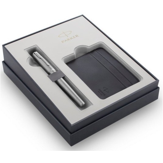 Każde opakowanie prezentowe, odzwierciedlające tożsamość marki, zostało zaprojektowane z pasją i przyciąga wzrok wyjątkowymi zdobieniami. Produkty zostały specjalnie dobrane tak, aby stworzyć prezent idealny na każdą okazję. W tym zestawie znajdziesz pióro wieczne i dopasowane czarne etui z PU na karty płatnicze zapakowane w klasyczne pudełko upominkowe Parker. Ten zestaw zawiera idealne akcesorium, które ułatwi dostęp do pióra oraz kart i pozwoli zachować porządek. Idealny upominek na każdą okazję.