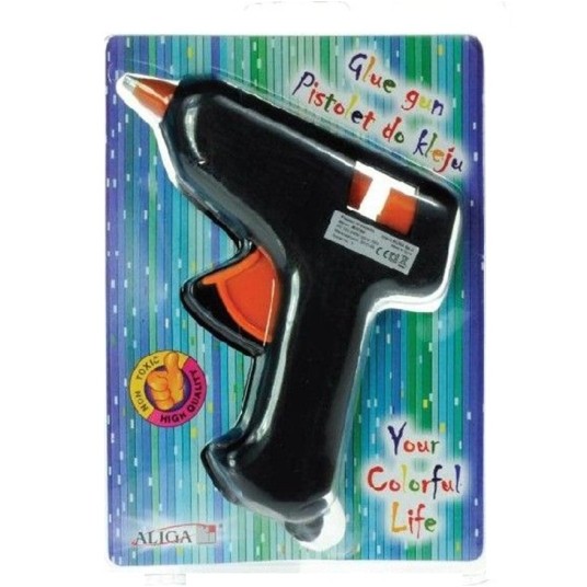 Pistolet do kleju Aliga, umożliwia w łatwy i szybki sposób przyklejać małe i duże dekoracje np. tasiemki czy cekiny.